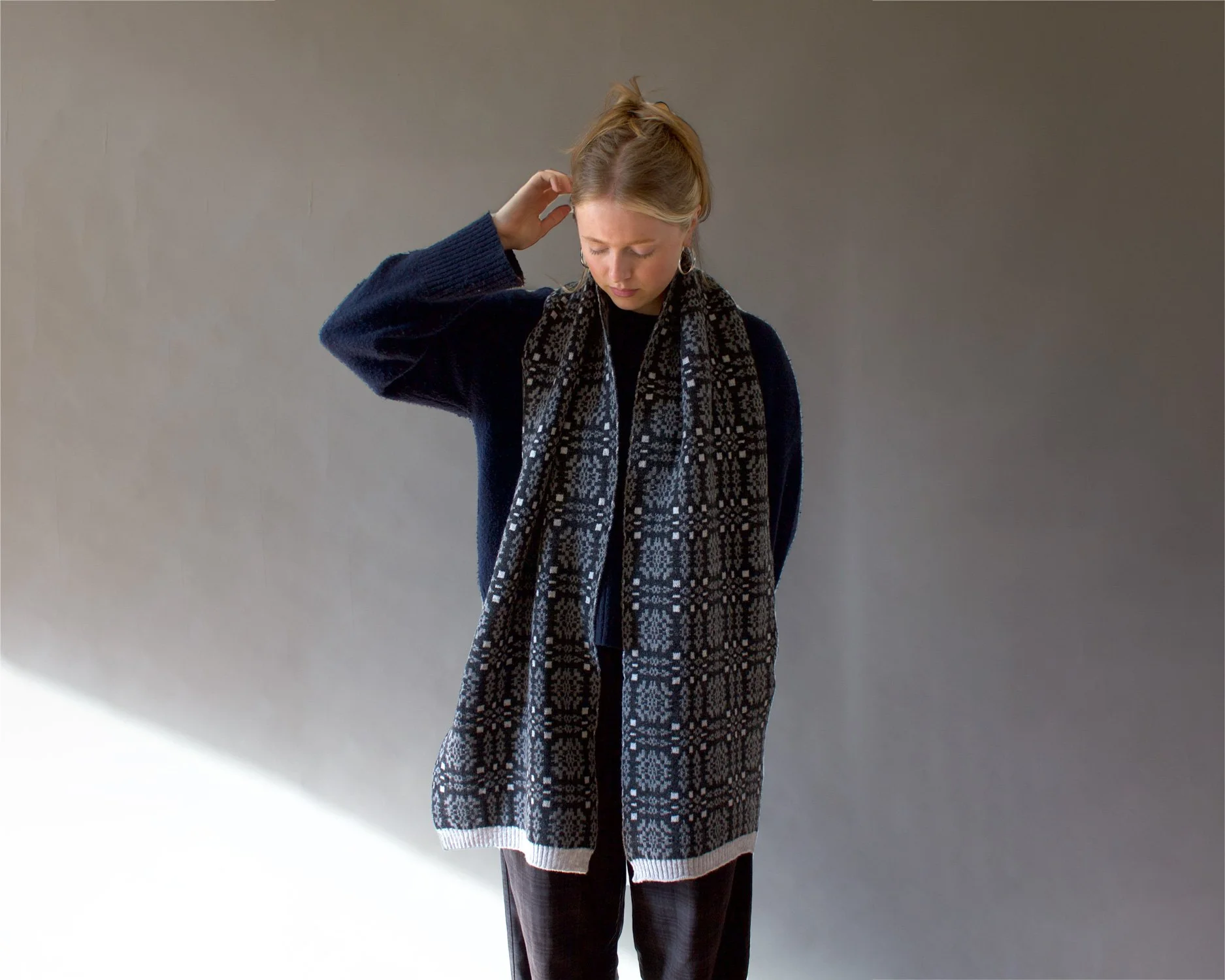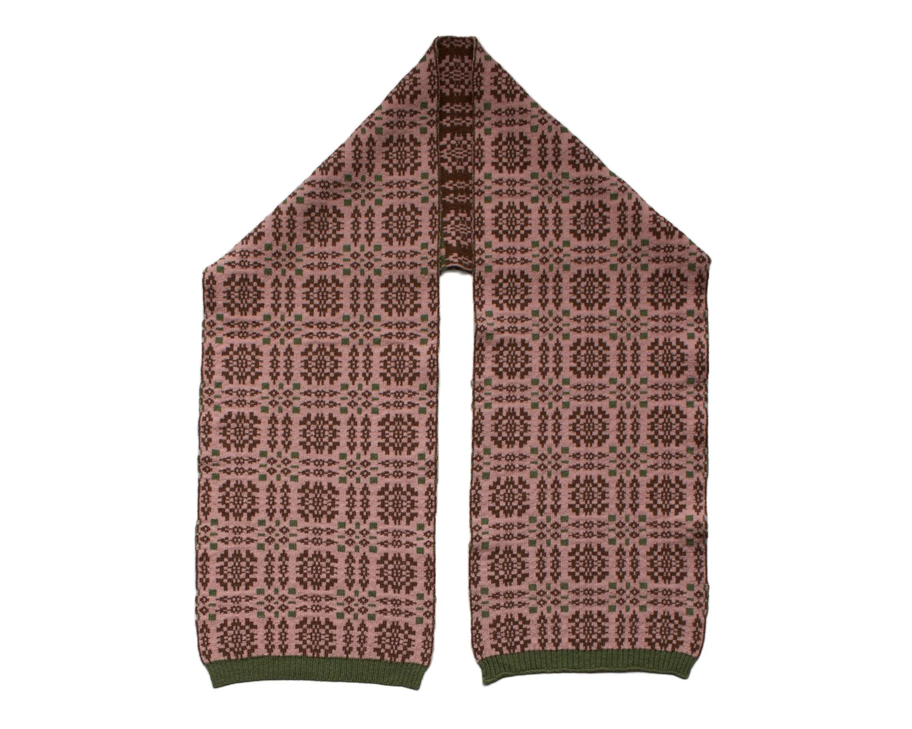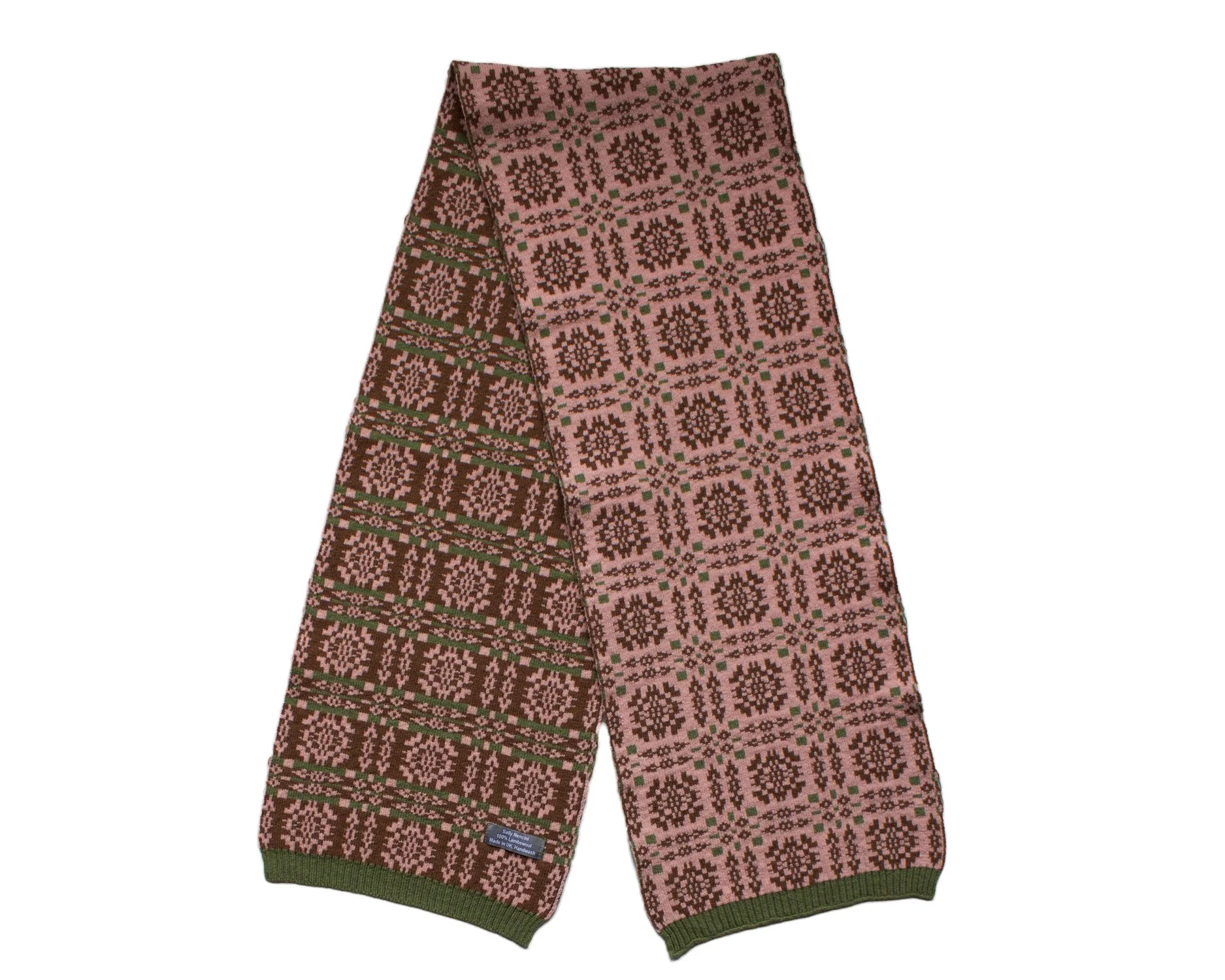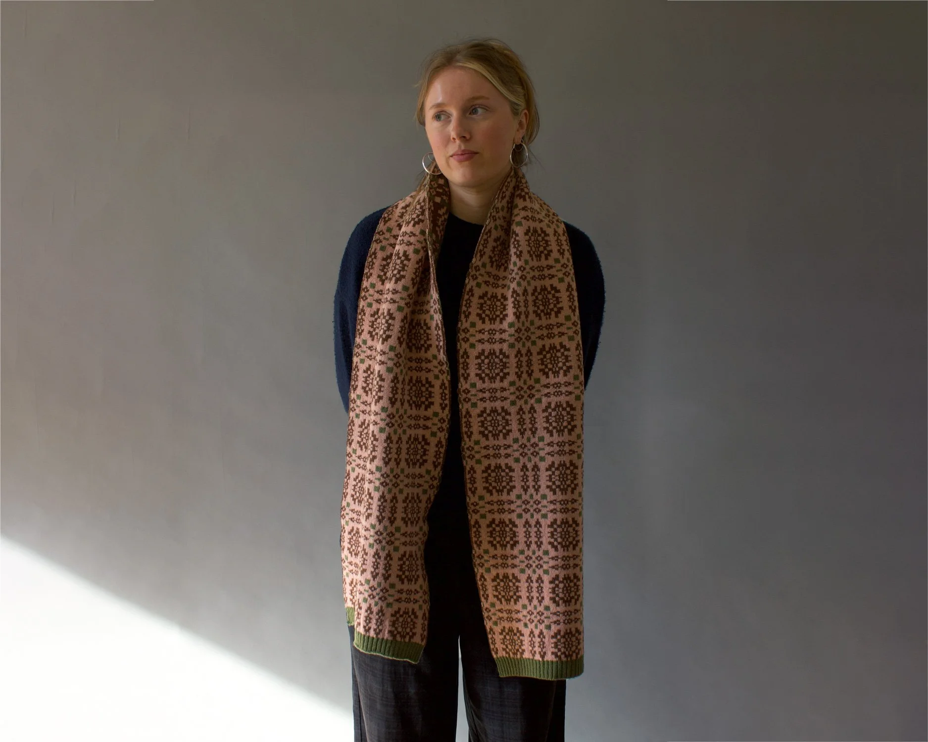 This lambswool scarf is knitted in a pattern featuring the beautiful fern leaf in lovely natural soft green with a linen coloured background - a colour palette ensuring versatility for understated style and comfort.